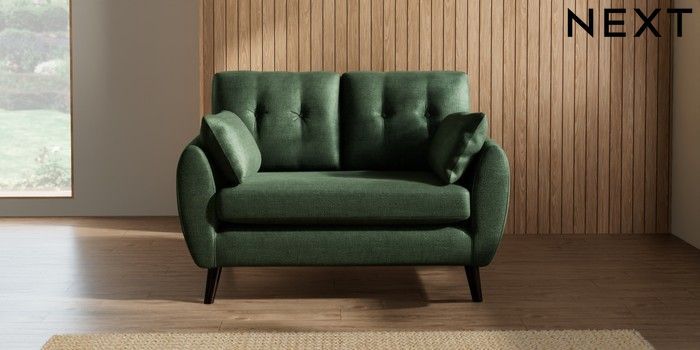 7.3.1 Buy Wilson Buttoned Back 2 Seater Small Sofa Luxe Chenille Dark Green Retro Tapered - Dark from the Seasons online shop Click here to use our website with more accessibility support, for example screen readers