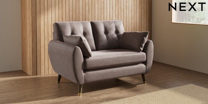 7.3.1 Buy Wilson Buttoned Back 2 Seater Small Sofa Luxe Chenille Mink Brown Low Retro Tapered Metal Cap - Mid from the Seasons online shop Click here to use our website with more accessibility support, for example screen readers