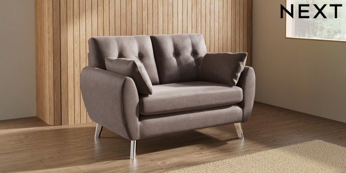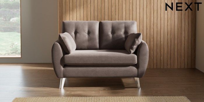7.3.1 Buy Wilson Buttoned Back 2 Seater Small Sofa Luxe Chenille Mink Brown Metal Tapered - Chrome from the Seasons online shop Click here to use our website with more accessibility support, for example screen readers