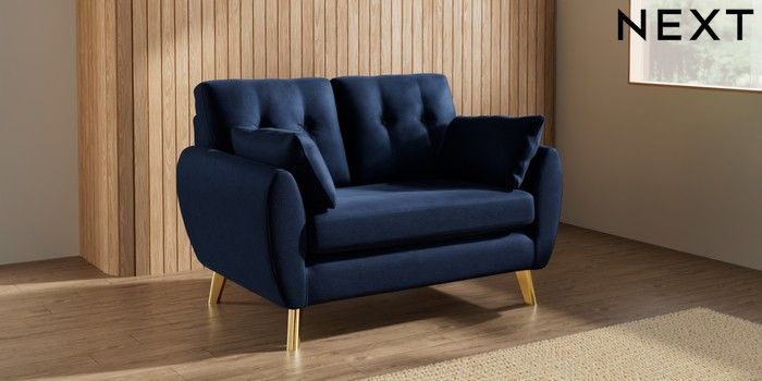 7.3.1 Buy Wilson Buttoned Back 2 Seater Small Sofa Luxe Chenille Navy Blue Metal Tapered - Gold from the Seasons online shop Click here to use our website with more accessibility support, for example screen readers