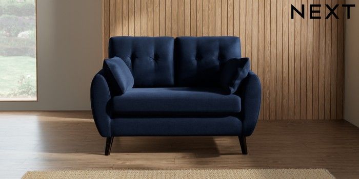 7.2.10 Buy Wilson Buttoned Back 2 Seater Small Sofa Luxe Chenille Navy Blue Retro Tapered - Dark from the Seasons online shop Click here to use our website with more accessibility support, for example screen readers