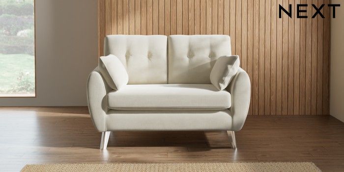 7.3.1 Buy Wilson Buttoned Back 2 Seater Small Sofa Luxe Chenille Oyster Metal Tapered - Chrome from the Seasons online shop Click here to use our website with more accessibility support, for example screen readers