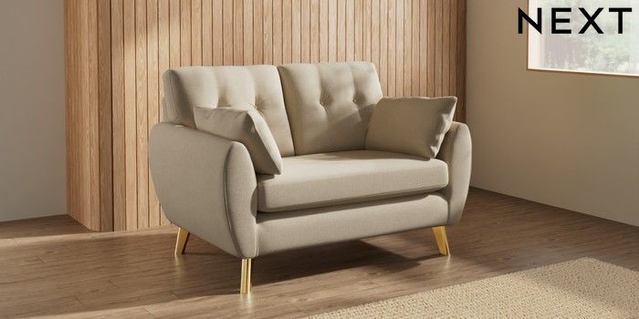7.3.1 Buy Wilson Buttoned Back 2 Seater Small Sofa Natural Mix Light Natural Metal Tapered - Gold from the Seasons online shop Click here to use our website with more accessibility support, for example screen readers