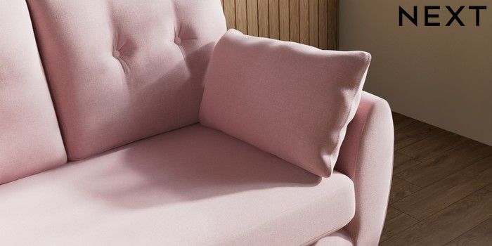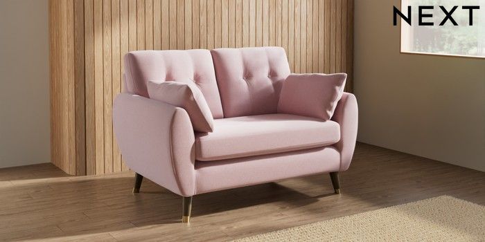 7.3.1 Buy Wilson Buttoned Back 2 Seater Small Sofa Natural Mix Light Rose Pink Low Retro Tapered Metal Cap - Mid from the Seasons online shop Click here to use our website with more accessibility support, for example screen readers