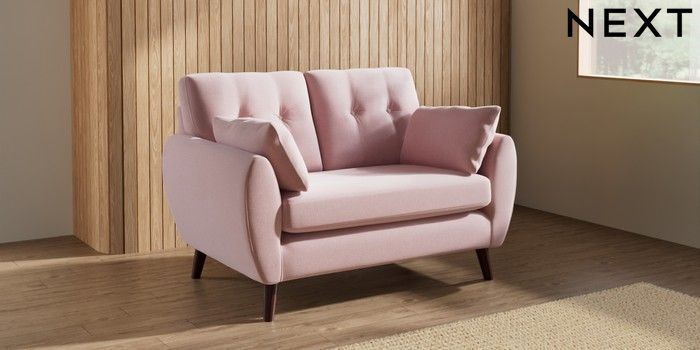 7.3.1 Buy Wilson Buttoned Back 2 Seater Small Sofa Natural Mix Light Rose Pink Retro Tapered - Dark Brown from the Seasons online shop Click here to use our website with more accessibility support, for example screen readers