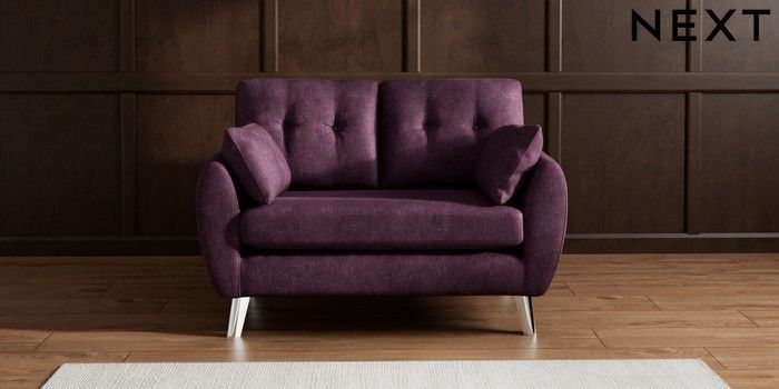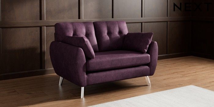 7.3.1 Buy Wilson Buttoned Back 2 Seater Small Sofa Plush Chenille Dark Plum Purple Metal Tapered - Chrome from the Seasons online shop Click here to use our website with more accessibility support, for example screen readers
