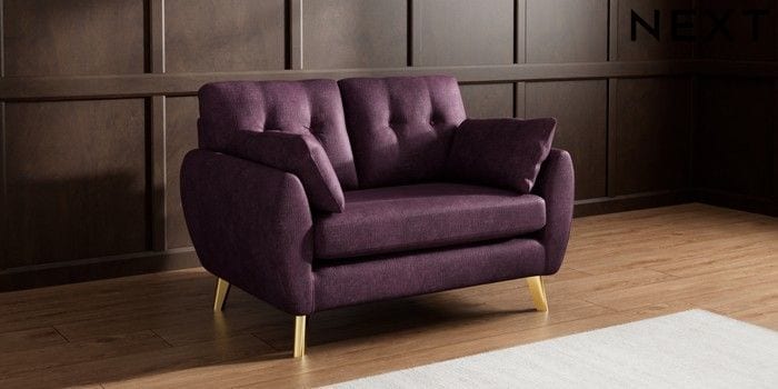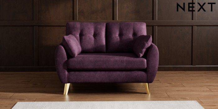 7.3.1 Buy Wilson Buttoned Back 2 Seater Small Sofa Plush Chenille Dark Plum Purple Metal Tapered - Gold from the Seasons online shop Click here to use our website with more accessibility support, for example screen readers