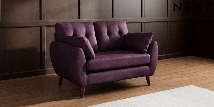 7.3.1 Buy Wilson Buttoned Back 2 Seater Small Sofa Plush Chenille Dark Plum Purple Retro Tapered - Dark Brown from the Seasons online shop Click here to use our website with more accessibility support, for example screen readers