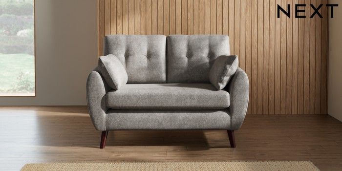 7.2.10 Buy Wilson Buttoned Back 2 Seater Small Sofa Plush Chenille Light Grey Retro Tapered - Dark Brown from the Seasons online shop Click here to use our website with more accessibility support, for example screen readers