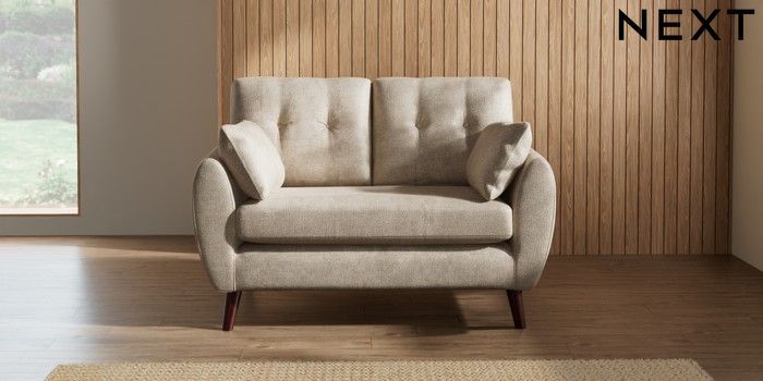 7.3.1 Buy Wilson Buttoned Back 2 Seater Small Sofa Plush Chenille Light Natural Retro Tapered - Dark Brown from the Seasons online shop Click here to use our website with more accessibility support, for example screen readers