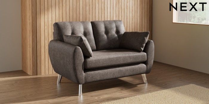 7.3.1 Buy Wilson Buttoned Back 2 Seater Small Sofa Plush Chenille Mink Brown Metal Tapered - Chrome from the Seasons online shop Click here to use our website with more accessibility support, for example screen readers