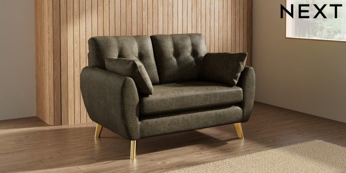 7.3.1 Buy Wilson Buttoned Back 2 Seater Small Sofa Plush Chenille Moss Green Metal Tapered - Gold from the Seasons online shop Click here to use our website with more accessibility support, for example screen readers