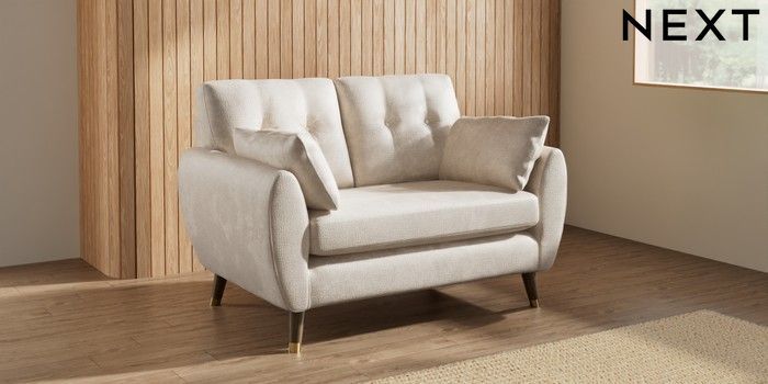 7.3.1 Buy Wilson Buttoned Back 2 Seater Small Sofa Plush Chenille Oyster Low Retro Tapered Metal Cap - Mid from the Seasons online shop Click here to use our website with more accessibility support, for example screen readers