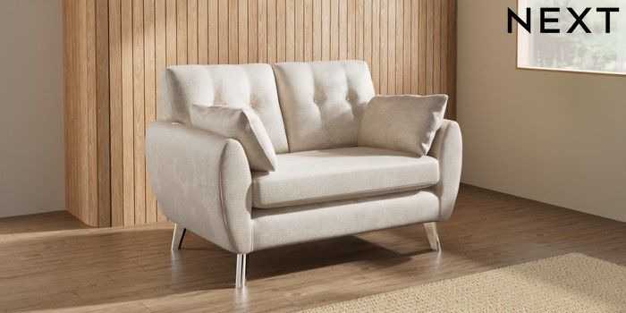 7.3.1 Buy Wilson Buttoned Back 2 Seater Small Sofa Plush Chenille Oyster Metal Tapered - Chrome from the Seasons online shop Click here to use our website with more accessibility support, for example screen readers
