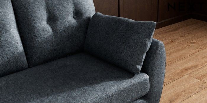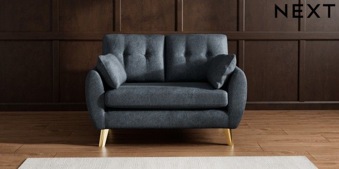 7.3.1 Buy Wilson Buttoned Back 2 Seater Small Sofa Plush Chenille Slate Blue Metal Tapered - Gold from the Seasons online shop Click here to use our website with more accessibility support, for example screen readers