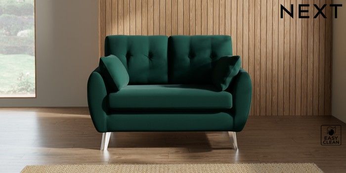 7.3.1 Buy Wilson Buttoned Back 2 Seater Small Sofa Plush Velvet Easy Clean Bottle Green Metal Tapered - Chrome from the Seasons online shop Click here to use our website with more accessibility support, for example screen readers