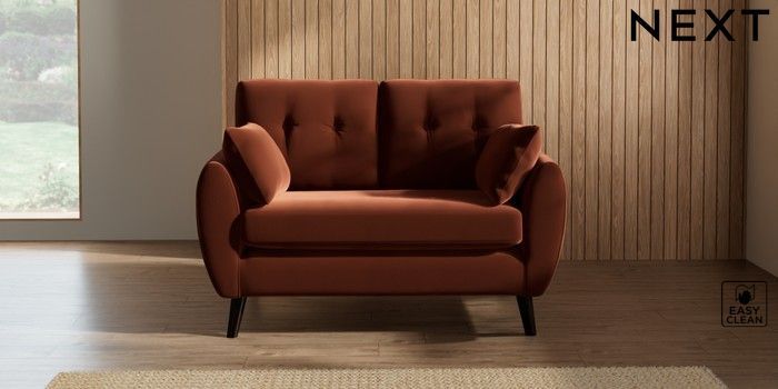 7.3.1 Buy Wilson Buttoned Back 2 Seater Small Sofa Plush Velvet Easy Clean Ginger Orange Retro Tapered - Dark from the Seasons online shop Click here to use our website with more accessibility support, for example screen readers