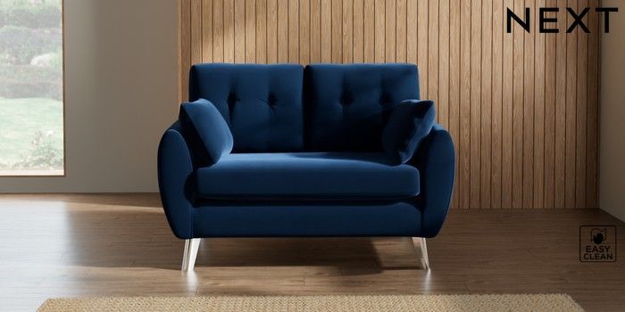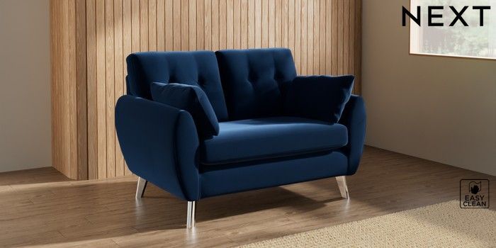 7.3.1 Buy Wilson Buttoned Back 2 Seater Small Sofa Plush Velvet Easy Clean Navy Blue Metal Tapered - Chrome from the Seasons online shop Click here to use our website with more accessibility support, for example screen readers