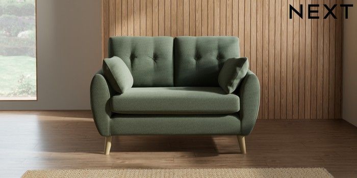 7.3.1 Buy Wilson Buttoned Back 2 Seater Small Sofa Relaxed Linen Look Dark Green Retro Tapered - Light from the Seasons online shop Click here to use our website with more accessibility support, for example screen readers