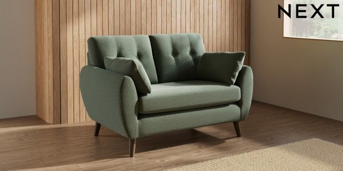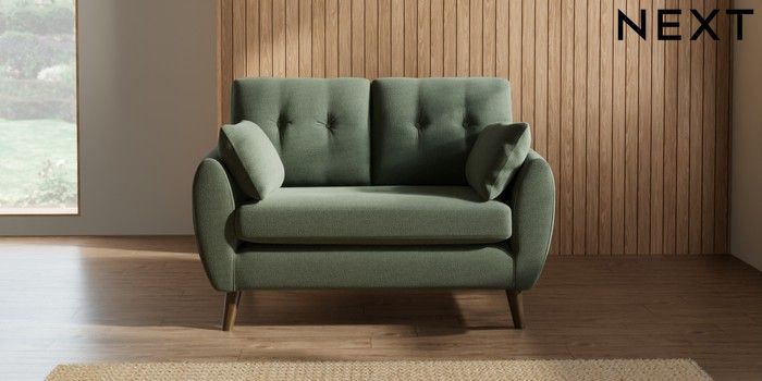 7.3.1 Buy Wilson Buttoned Back 2 Seater Small Sofa Relaxed Linen Look Dark Green Retro Tapered - Mid from the Seasons online shop Click here to use our website with more accessibility support, for example screen readers