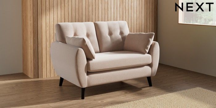 7.3.1 Buy Wilson Buttoned Back 2 Seater Small Sofa Relaxed Linen Look Mid Natural Retro Tapered - Dark from the Seasons online shop Click here to use our website with more accessibility support, for example screen readers