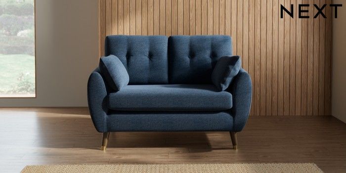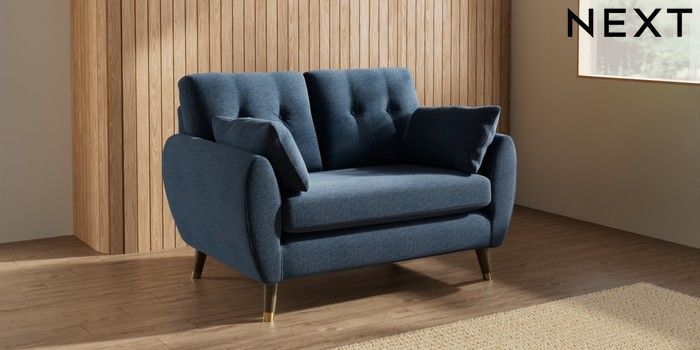 7.3.1 Buy Wilson Buttoned Back 2 Seater Small Sofa Ripple Chenille Dark Blue Low Retro Tapered Metal Cap - Mid from the Seasons online shop Click here to use our website with more accessibility support, for example screen readers