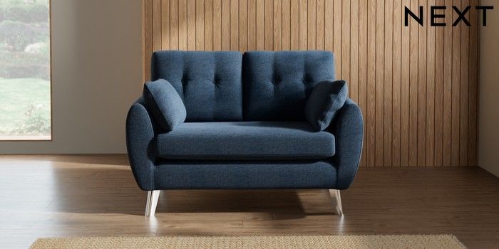 7.3.1 Buy Wilson Buttoned Back 2 Seater Small Sofa Ripple Chenille Dark Blue Metal Tapered - Chrome from the Seasons online shop Click here to use our website with more accessibility support, for example screen readers