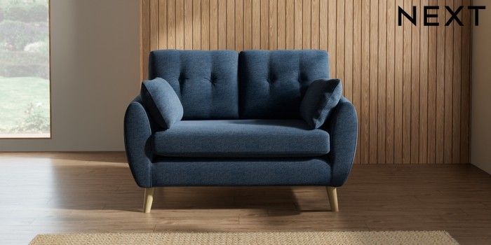 7.2.10 Buy Wilson Buttoned Back 2 Seater Small Sofa Ripple Chenille Dark Blue Retro Tapered - Light from the Seasons online shop Click here to use our website with more accessibility support, for example screen readers