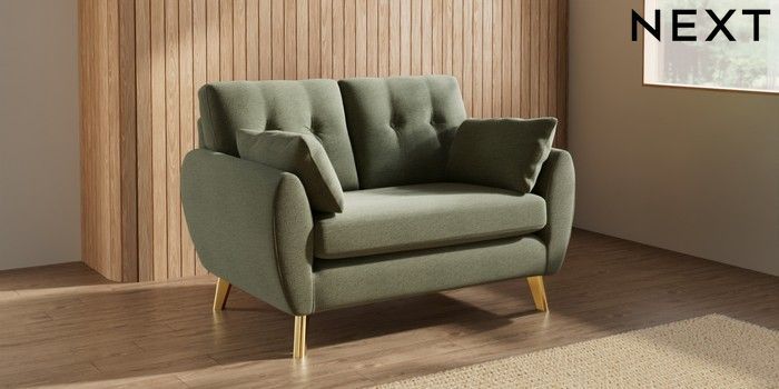 7.3.1 Buy Wilson Buttoned Back 2 Seater Small Sofa Ripple Chenille Mid Moss Green Metal Tapered - Gold from the Seasons online shop Click here to use our website with more accessibility support, for example screen readers