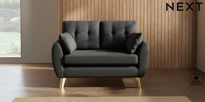 7.3.1 Buy Wilson Buttoned Back 2 Seater Small Sofa Tweedy Blend Easy Clean Charcoal Grey Metal Tapered - Gold from the Seasons online shop Click here to use our website with more accessibility support, for example screen readers