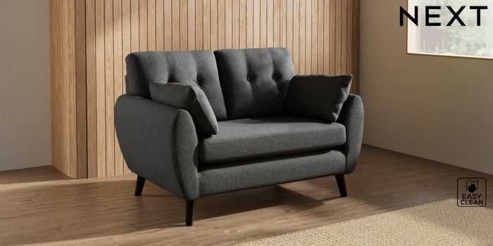 7.3.1 Buy Wilson Buttoned Back 2 Seater Small Sofa Tweedy Blend Easy Clean Charcoal Grey Retro Tapered - Dark from the Seasons online shop Click here to use our website with more accessibility support, for example screen readers