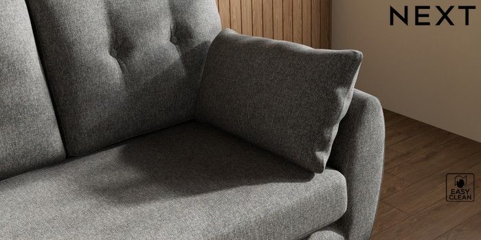 7.3.1 Buy Wilson Buttoned Back 2 Seater Small Sofa Tweedy Blend Easy Clean Dark Grey Retro Tapered - Mid from the Seasons online shop Click here to use our website with more accessibility support, for example screen readers