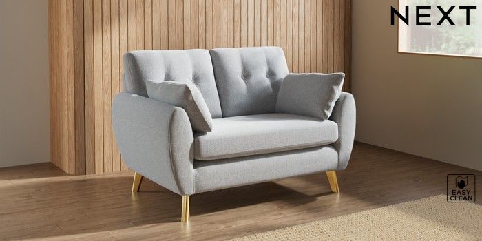 7.3.1 Buy Wilson Buttoned Back 2 Seater Small Sofa Tweedy Blend Easy Clean Light Silver Grey Metal Tapered - Gold from the Seasons online shop Click here to use our website with more accessibility support, for example screen readers