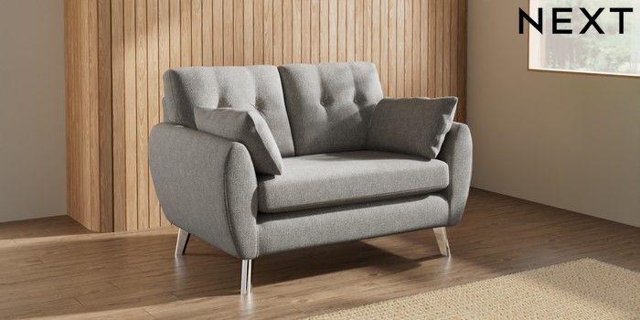 7.3.1 Buy Wilson Buttoned Back 2 Seater Small Sofa Tweedy Chenille Mid Grey Metal Tapered - Chrome from the Seasons online shop Click here to use our website with more accessibility support, for example screen readers