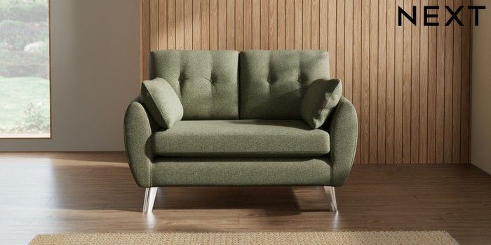 7.3.1 Buy Wilson Buttoned Back 2 Seater Small Sofa Tweedy Chenille Mid Moss Green Metal Tapered - Chrome from the Seasons online shop Click here to use our website with more accessibility support, for example screen readers