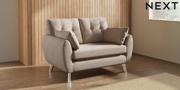 7.3.1 Buy Wilson Buttoned Back 2 Seater Small Sofa Tweedy Chenille Mid Natural Metal Tapered - Chrome from the Seasons online shop Click here to use our website with more accessibility support, for example screen readers