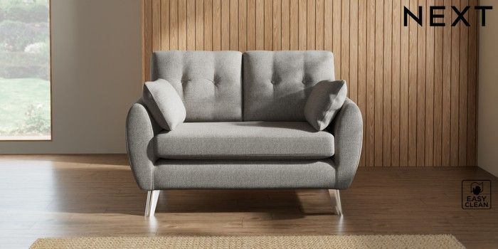 7.3.1 Buy Wilson Buttoned Back 2 Seater Small Sofa Woven Chenille Easy Clean Light Grey Metal Tapered - Chrome from the Seasons online shop Click here to use our website with more accessibility support, for example screen readers