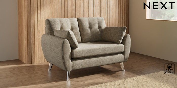 7.3.1 Buy Wilson Buttoned Back 2 Seater Small Sofa Woven Chenille Easy Clean Mid Natural Metal Tapered - Chrome from the Seasons online shop Click here to use our website with more accessibility support, for example screen readers