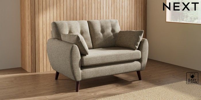 7.3.1 Buy Wilson Buttoned Back 2 Seater Small Sofa Woven Chenille Easy Clean Mid Natural Retro Tapered - Dark Brown from the Seasons online shop Click here to use our website with more accessibility support, for example screen readers