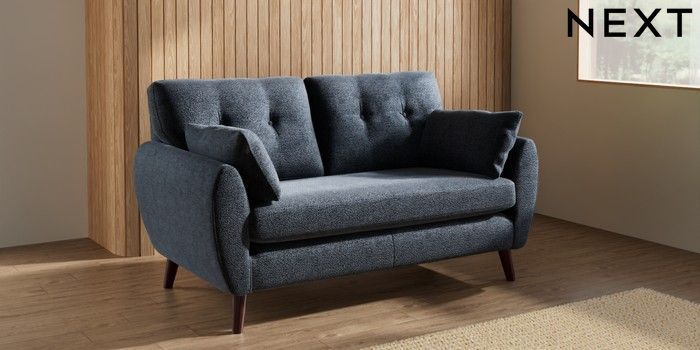 7.3.1 Buy Wilson Buttoned Back 2 Seater Sofa Boucle Chenille Dark Slate Blue Retro Tapered - Dark Brown from the Seasons online shop Click here to use our website with more accessibility support, for example screen readers