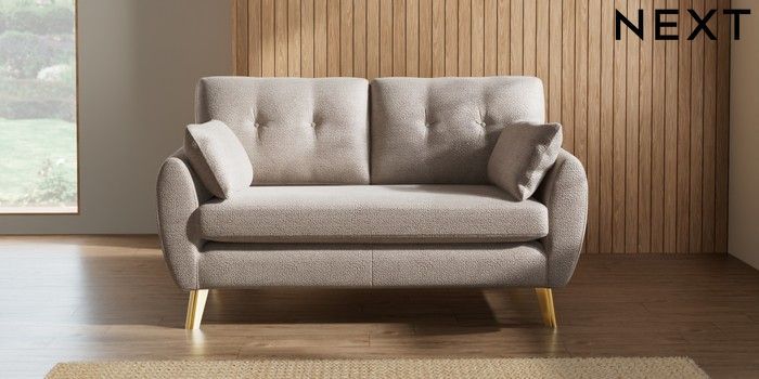 7.3.1 Buy Wilson Buttoned Back 2 Seater Sofa Boucle Chenille Light Natural Metal Tapered - Gold from the Seasons online shop Click here to use our website with more accessibility support, for example screen readers