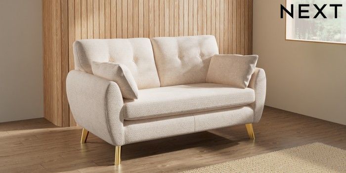 7.3.1 Buy Wilson Buttoned Back 2 Seater Sofa Boucle Chenille Oyster Metal Tapered - Gold from the Seasons online shop Click here to use our website with more accessibility support, for example screen readers