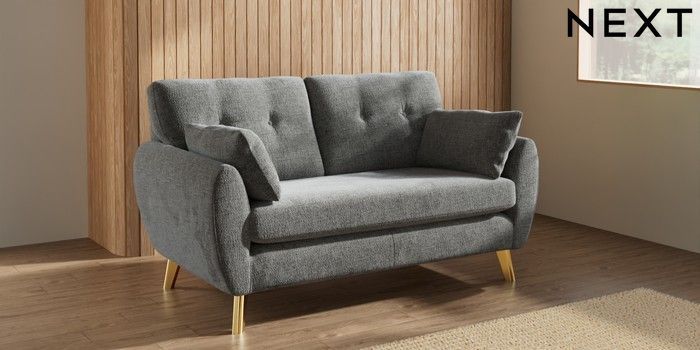 7.3.1 Buy Wilson Buttoned Back 2 Seater Sofa Chunky Chenille Dark Grey Metal Tapered - Gold from the Seasons online shop Click here to use our website with more accessibility support, for example screen readers