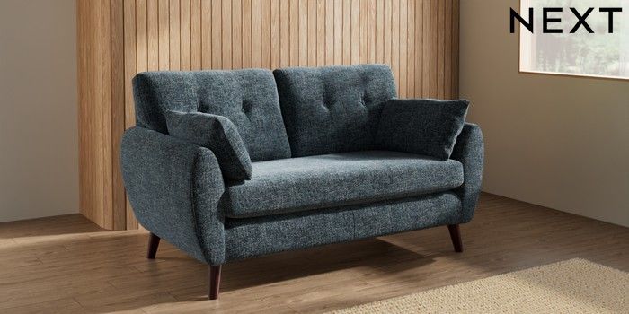 7.3.1 Buy Wilson Buttoned Back 2 Seater Sofa Chunky Chenille Dark Navy Blue Retro Tapered - Dark Brown from the Seasons online shop Click here to use our website with more accessibility support, for example screen readers