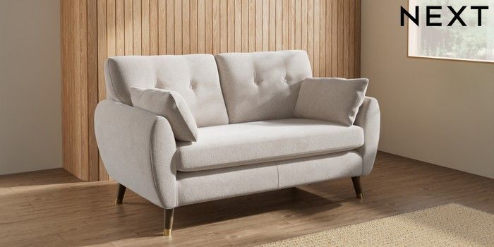 7.3.1 Buy Wilson Buttoned Back 2 Seater Sofa Chunky Chenille Oyster Low Retro Tapered Metal Cap - Mid from the Seasons online shop Click here to use our website with more accessibility support, for example screen readers