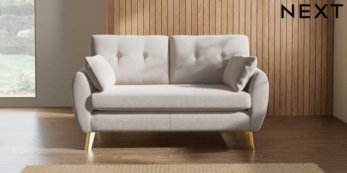 7.3.1 Buy Wilson Buttoned Back 2 Seater Sofa Chunky Chenille Oyster Metal Tapered - Gold from the Seasons online shop Click here to use our website with more accessibility support, for example screen readers