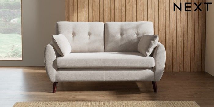 7.3.1 Buy Wilson Buttoned Back 2 Seater Sofa Chunky Chenille Oyster Retro Tapered - Dark Brown from the Seasons online shop Click here to use our website with more accessibility support, for example screen readers