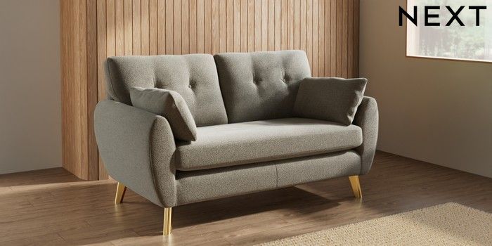 7.3.1 Buy Wilson Buttoned Back 2 Seater Sofa Chunky Marl Light Olive Green Metal Tapered - Gold from the Seasons online shop Click here to use our website with more accessibility support, for example screen readers