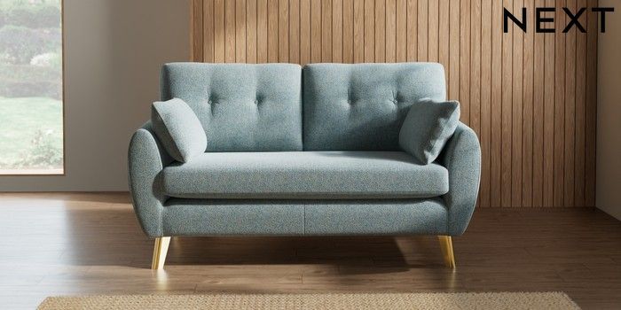 7.3.1 Buy Wilson Buttoned Back 2 Seater Sofa Chunky Marl Mid Blue Metal Tapered - Gold from the Seasons online shop Click here to use our website with more accessibility support, for example screen readers