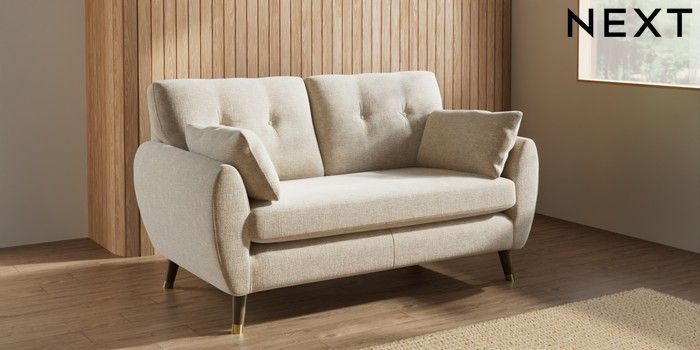 7.3.1 Buy Wilson Buttoned Back 2 Seater Sofa Chunky Weave Cream Low Retro Tapered Metal Cap - Mid from the Seasons online shop Click here to use our website with more accessibility support, for example screen readers